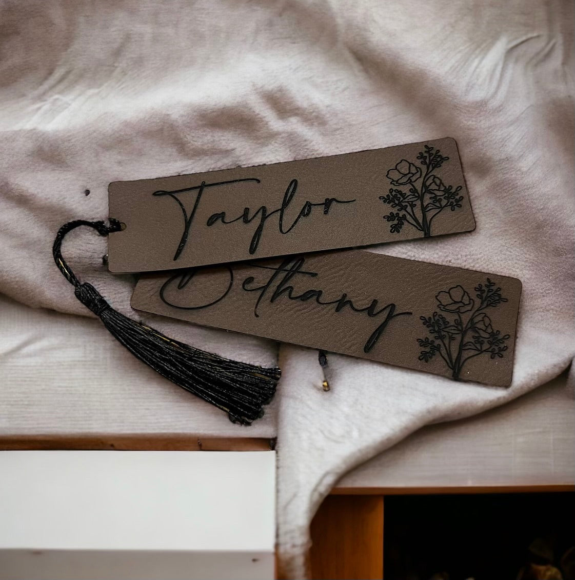 Personalized Floral Leather Bookmark